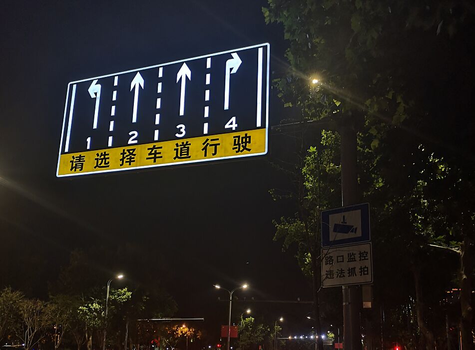 2017年6月,在濟南市安裝了一批面板顯示型主動發(fā)光標志,該標志采用內(nèi)置全光源投射標志面層,標志面層發(fā)光部分采用進口設(shè)備鏤空無筋雕刻,光源穿透鏤空層的專用透光膜,形成面板顯示型主動發(fā)光效果,不僅增強了標志的遠距離視認性和大角度視認,同時也為區(qū)域交通環(huán)境做出了畫龍點睛的效果,為地區(qū)打造交通亮點,樹立城市示范大道,提供了創(chuàng)新元素。