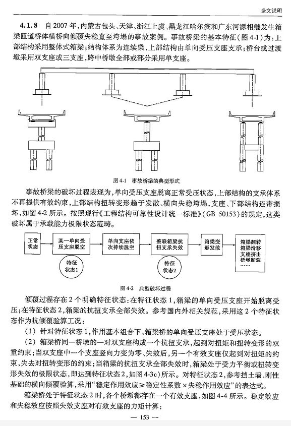 據(jù)專業(yè)標(biāo)準(zhǔn)了解,該處橋梁上部結(jié)構(gòu)采用整體式箱梁;結(jié)構(gòu)體系為連續(xù)梁,上部結(jié)構(gòu)由單向受壓支座體系;橋臺(tái)或過渡墩采用雙支座或三支座,跨中橋墩全部或部分采用單支座。該類型橋梁易被破壞的表現(xiàn)為:?jiǎn)蜗蚴軌褐ё撾x正常受壓狀態(tài),上部結(jié)構(gòu)的支承體系不再提供有效約束,上部結(jié)構(gòu)扭轉(zhuǎn)變形趨于發(fā)散、橫向失穩(wěn)垮塌,支座、下部結(jié)構(gòu)連帶損壞。參見行標(biāo)《公路鋼筋混凝土及預(yù)應(yīng)力 混凝土橋涵設(shè)計(jì)規(guī)范》(JTG 3362-2018)。