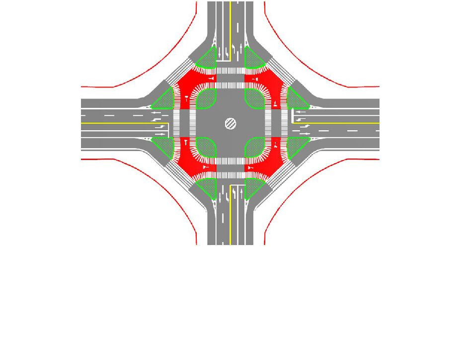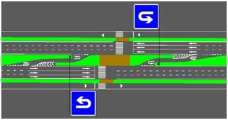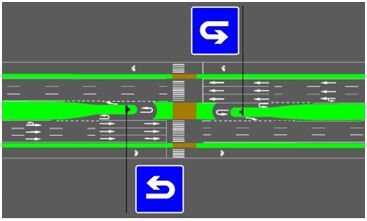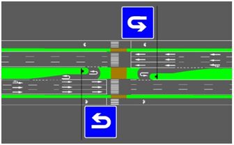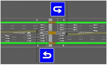 在交通工程設(shè)計中,為滿足路段車輛掉頭通行需求,可根據(jù)條件在路段渠化允許掉頭車道。城市快速路、無中央分隔帶的主干道上嚴禁設(shè)置路段掉頭,在設(shè)置車輛掉頭車道時,應(yīng)保證其對向交通為非飽和流量狀態(tài),同時道路寬度應(yīng)能滿足區(qū)域準許通行的最大車輛掉頭行駛最低尺寸。以下列出路段允許掉頭的幾種設(shè)計方法和施策,供同行參考: