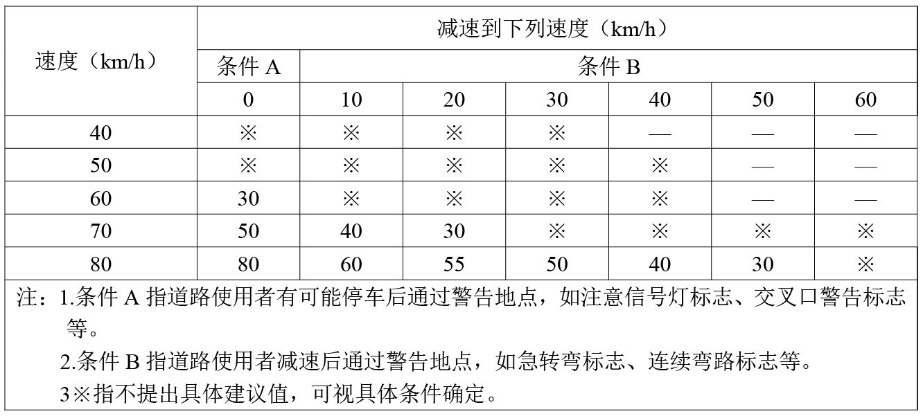 3、在下陡坡起點(diǎn)設(shè)置限速標(biāo)志,在坡道結(jié)束處應(yīng)設(shè)置解除限速標(biāo)志,或是新限速值標(biāo)志。