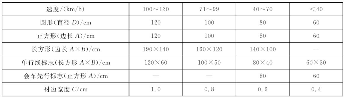 設(shè)置在胡同、隔離帶的指示標(biāo)志,設(shè)置空間受限制時,如果采 用柱式標(biāo)志可采用最小值,指示標(biāo)志的直徑(或短邊邊長)最小不應(yīng)小于50cm。
