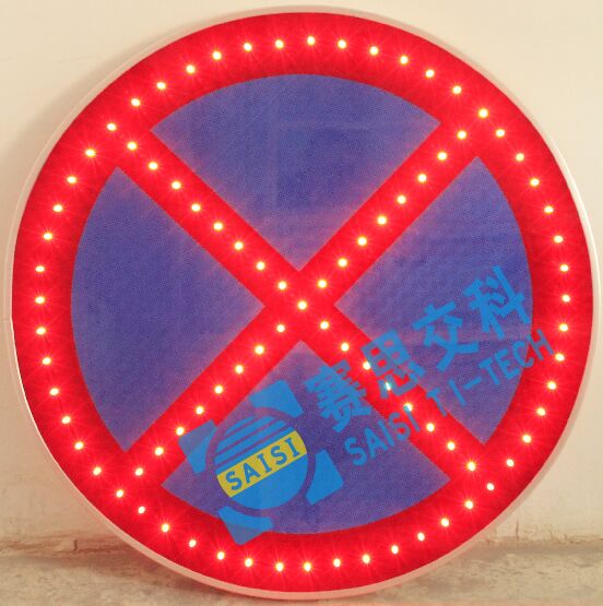 禁令類道路交通發(fā)光標(biāo)志牌,其主要功能為宣告路段或區(qū)域內(nèi),通行車輛的屬性、駕駛行為、通行軌跡的行政管理指令。如:“限制速度標(biāo)志”、“禁左標(biāo)志”、“禁停標(biāo)志”、“禁止鳴笛標(biāo)志”、“禁止超車標(biāo)志”、“限制高度標(biāo)志”、“限制貨車通行標(biāo)志”等。其形狀通常是圓形、單面八角形或等邊的自上而下的三角線,其形狀通常是白色底部、紅色圓圈、紅色斜桿和黑色圖案,"禁止停車標(biāo)志"為藍色底部、紅色圓圈、紅色斜桿。該類標(biāo)志,通常選用“全透面板型主動發(fā)光標(biāo)志”、“外置點陣型主動發(fā)光標(biāo)志”等類型。