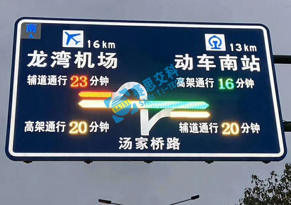目前常見的智能型主動發(fā)光標(biāo)志有:路況動態(tài)誘導(dǎo)發(fā)光標(biāo)志、時空同步顯示發(fā)光標(biāo)志、光帶路網(wǎng)顯示型發(fā)光標(biāo)志等,詳細產(chǎn)品介紹點擊網(wǎng)站鏈接。智能型主動發(fā)光標(biāo)志版面整體采用半透主動發(fā)光工藝,將實時路況云數(shù)據(jù)解析,采用專業(yè)計算方法,通過無線通訊技術(shù)傳輸至標(biāo)志顯示終端,實現(xiàn)實時路況的動態(tài)顯示與路徑優(yōu)化指引功能。