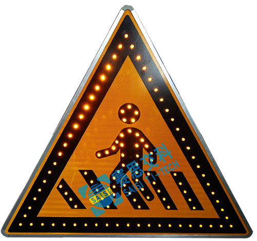 (二)標(biāo)志、標(biāo)線設(shè)置。設(shè)置了行人過(guò)街斑馬線的上游30—50米范圍內(nèi)應(yīng)設(shè)置“人行橫道指示標(biāo)志”,安裝面角度向道路中央線傾斜角度,以保證司機(jī)有充分的觀察視角,不得被遮擋,可根據(jù)需要設(shè)置主動(dòng)發(fā)光標(biāo)志,提高全天候視認(rèn)效果,和夜間的遠(yuǎn)距離視認(rèn)性,同時(shí)也能加強(qiáng)標(biāo)志的信息突顯性,增強(qiáng)司機(jī)的及時(shí)捕捉、發(fā)現(xiàn)的概率。