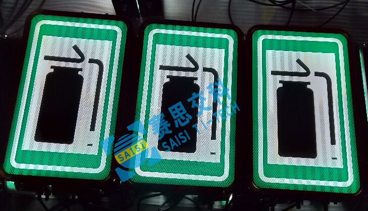 由于隧道內(nèi)若發(fā)生火災(zāi)、重大事故時,其照明系統(tǒng)可能會緊急關(guān)閉,空間光照環(huán)境相對較差,所以相關(guān)規(guī)范均提出,隧道內(nèi)的消防指示標(biāo)志應(yīng)采用光電發(fā)光標(biāo)志。在國標(biāo)《城市道路交通標(biāo)志和標(biāo)志設(shè)置規(guī)范》(GB51038-2015)中提出:隧道內(nèi)指示緊急電話、消防設(shè)備、人行橫洞、行車橫洞、緊急停車帶、疏散等標(biāo)志,應(yīng)采用主動發(fā)光或照明式標(biāo)志,其他標(biāo)志宜采用主動發(fā)光或照明式標(biāo)志。