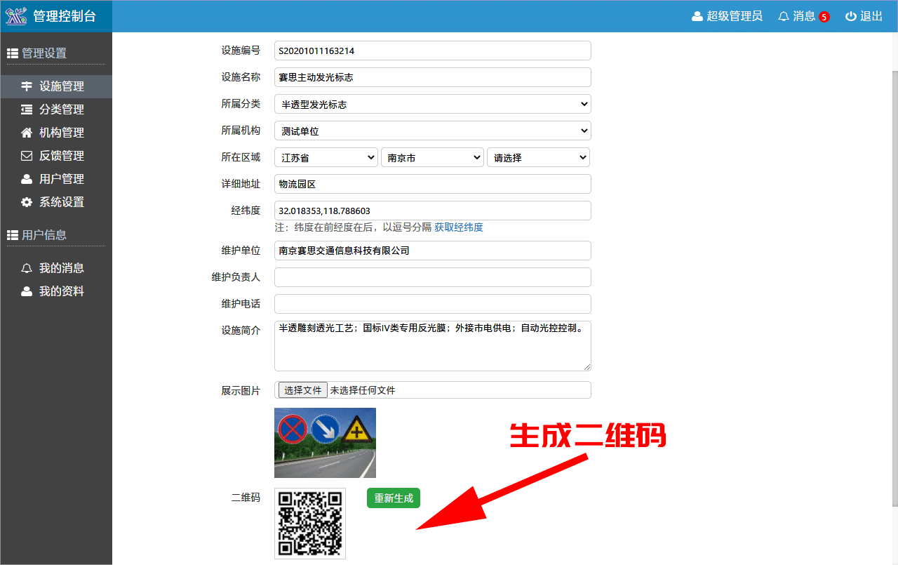 這款設(shè)施管理系統(tǒng),可通過后臺添加修改設(shè)施設(shè)備,并生成對應(yīng)的二維碼??砂讯S碼印在分散各地的設(shè)施設(shè)備上,不僅能讓公眾查看設(shè)施設(shè)備的詳情,也能及時反饋故障。比如交通設(shè)施,出現(xiàn)倒塌等問題后,行人可通過掃描二維碼提交故障問題,后臺人員可及時看到實時反饋,安排人員進行搶修。