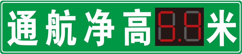 船舶準備通行橋梁、管道等跨河建筑物時,需提前獲知橋梁底沿與航道水面之間的高度,又稱“航道凈高”,以保證能安全通過橋梁下方航道,各級航道所必須的通航凈高在國家頒布的通航標準中均有規(guī)定,隨著航道水域出現(xiàn)的“漲潮期”、“枯水期”,航道凈高數(shù)值也是動態(tài)變化的,所以作為橋梁設(shè)計、管養(yǎng)方,為橋梁安裝能動態(tài)顯示通航凈高數(shù)值的發(fā)光標志牌,能有效保障航道的通行安全,本次設(shè)計的“通航凈高動態(tài)顯示發(fā)光標志”(下一:白天效果;下二:夜間效果)。