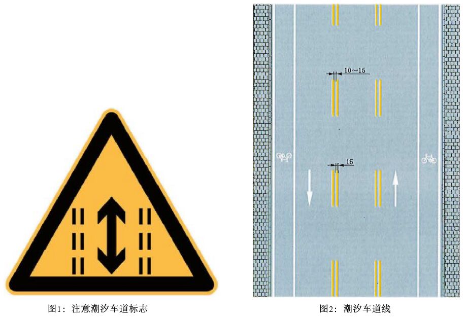 對(duì)于潮汐車道,應(yīng)在臨近潮汐車道附近的主要交通節(jié)點(diǎn)及主干道路上,應(yīng)設(shè)置必要的“潮汐車道指示標(biāo)志”,提前向道路使用者預(yù)告潮汐車道信息,并配合對(duì)應(yīng)的地面標(biāo)識(shí)使用。