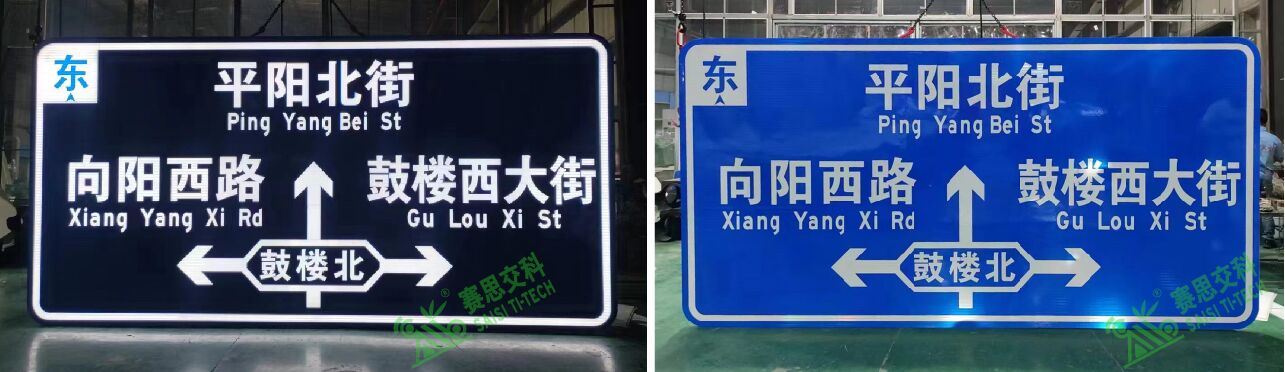 背透式主動發(fā)光標(biāo)志,是一種內(nèi)置照明標(biāo)志,即通過內(nèi)置光源照射,光源從標(biāo)志面版層的后背穿過(pass through),增強標(biāo)志版面關(guān)鍵信息的亮度,來提升標(biāo)志視認(rèn)的一種發(fā)光標(biāo)志制作工藝。背透式發(fā)光標(biāo)志,按其面板層的發(fā)光面積占比大小,又分為“半透型”和“全透型”兩款。半透型背透式主動發(fā)光標(biāo)志,其面板僅增強了關(guān)鍵信息內(nèi)容的發(fā)光,標(biāo)志底板不發(fā)光,僅保留了逆反射功能,其優(yōu)點在于標(biāo)志視認(rèn)的對比度強;全透型背透式主動發(fā)光標(biāo)志,其整個面板層都發(fā)光,也同時保留不發(fā)光時的逆反射功能,其優(yōu)點在于標(biāo)志整體的亮化效果更醒目。