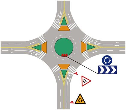 3、環(huán)形交叉口,入環(huán)車輛需要讓行環(huán)內(nèi)車輛時,應(yīng)設(shè)置減速讓行標志。
