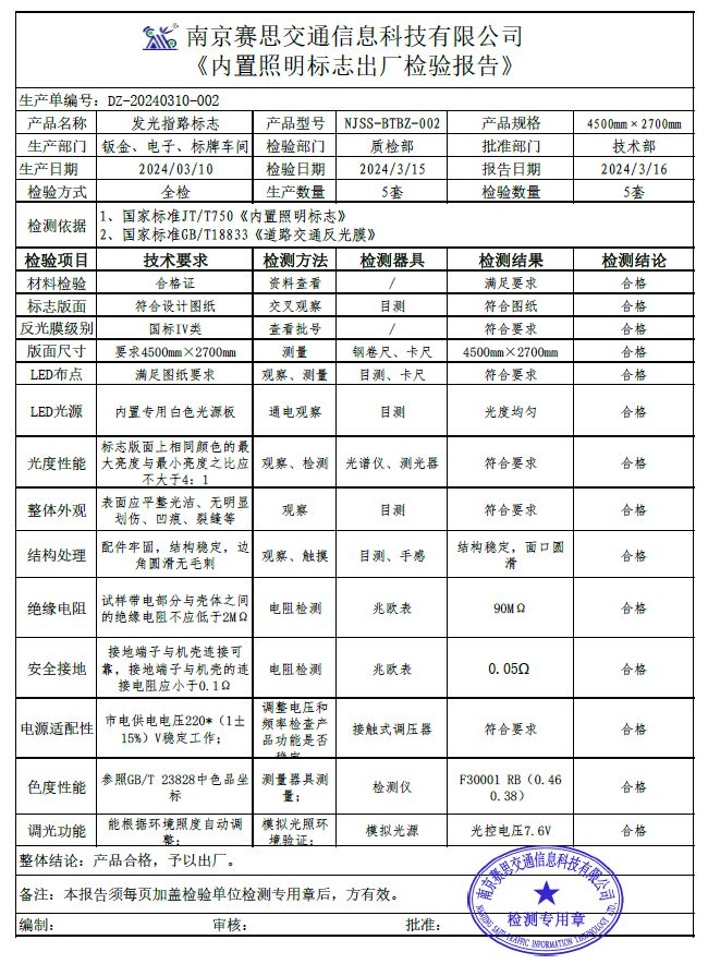 一塊完整的發(fā)光標(biāo)志牌生產(chǎn)技術(shù),涉及到:材料力學(xué)、結(jié)構(gòu)力學(xué)、光學(xué)、電子電路、太陽(yáng)能供電系統(tǒng)、智能控制、數(shù)據(jù)通訊等眾多領(lǐng)域,任何一道工序的馬虎麻痹,都會(huì)導(dǎo)致標(biāo)志最終的質(zhì)量瑕疵,“將問題控制在出廠前!”這是我們賽思交科提出的生產(chǎn)管理口號(hào),出廠前發(fā)現(xiàn)問題,能及時(shí)補(bǔ)救,設(shè)備資源、人力資源、技術(shù)資源都很完備,遠(yuǎn)勝于出廠后才發(fā)現(xiàn)問題的茫然與手忙腳亂?!?em>讓客戶放心、省心、安心!”這是我們賽思交科的服務(wù)宗旨,出廠前,對(duì)每一個(gè)細(xì)節(jié)的注重,就能省去客戶現(xiàn)場(chǎng)的很大麻煩。“我們比客戶更專業(yè)!我們比客戶更懂發(fā)光標(biāo)志!我們比客戶更了解發(fā)光標(biāo)志的內(nèi)部結(jié)構(gòu)!我們比客戶更具備解決問題的各種條件資源!”,消患于未然,我們賽思交科作為良心企業(yè),必須要高度重視檢查檢測(cè)工作??!出廠前,我們嚴(yán)格按照《檢查檢測(cè)作業(yè)指導(dǎo)流程》,做好以下檢查檢測(cè)工序: