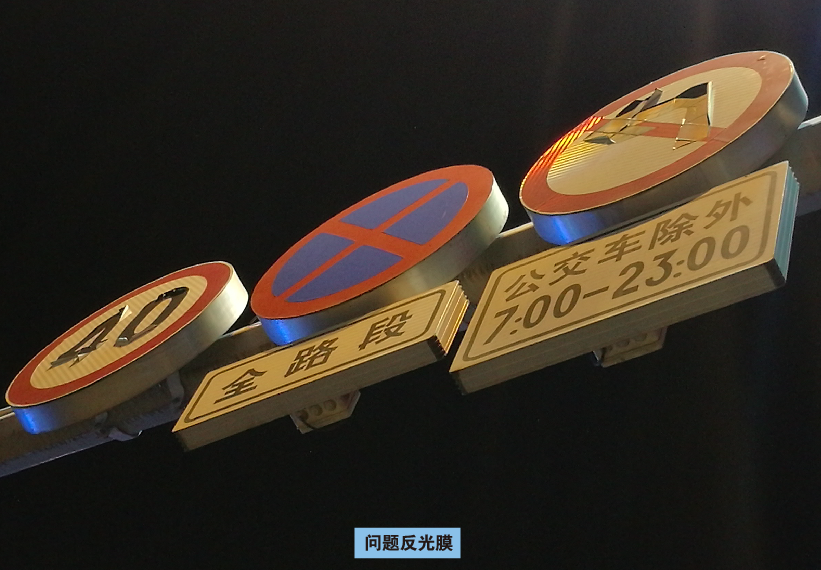 對(duì)于“半透式內(nèi)部照明發(fā)光標(biāo)志牌”來(lái)說(shuō),反光膜是它的“臉面”,再好的光源效果,如果沒(méi)有性能品質(zhì)穩(wěn)定的反光膜來(lái)襯托臉面,就如同“雖五官精致,但一臉雀斑、斑痕”,終究也算是丑的!反光膜的工藝、用材,起初是沒(méi)有考慮到使用在“發(fā)光標(biāo)志牌”上,而“半透式內(nèi)部照明發(fā)光標(biāo)志牌”對(duì)于反光膜的品質(zhì)要求,除了要滿足國(guó)標(biāo)《道路交通反光膜》(GB/T 18833)的基本要求外,還需滿足“透光率不低于20%”的要求(詳見(jiàn)行標(biāo)《內(nèi)部照明標(biāo)志》之5.2.3之b條款),而反光膜的13條檢測(cè)項(xiàng)目中并沒(méi)有“透光率”的檢測(cè)條目。