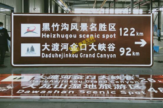 “內(nèi)置LED投射”工藝,主要包括:半投射(半透)和全投射(全透)兩種。半投射工藝,僅適用于版面的文字、字符、圖案、邊款線等為白色的標(biāo)志(如:指路標(biāo)志、指示標(biāo)志、旅游標(biāo)志等),因?yàn)樯钌档姆垂饽ね腹饴实?,不能滿足行業(yè)標(biāo)準(zhǔn)《內(nèi)部照明標(biāo)志》中關(guān)于“透光率大于20%”的指標(biāo)要求,而常常有些指示標(biāo)志中,會(huì)加入禁令、警告標(biāo)志,這種組合型標(biāo)志,就需要多種工藝來實(shí)現(xiàn)。在我們“賽思企業(yè)標(biāo)準(zhǔn)”中,通常這樣處理:對于小型標(biāo)志(面積小于4平方米),采用全投射工藝;對于大型標(biāo)志(面積大于4平方米),其中白色圖案部分采用“半投射工藝”,深色系圖案部分采用“全投射工藝”(如下圖),或外置LED點(diǎn)陣工藝。
