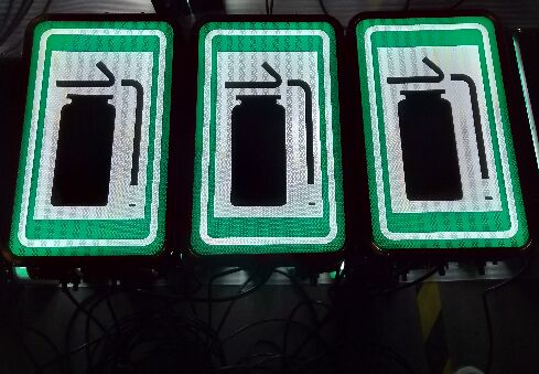 1、發(fā)光工藝:LED數(shù)碼打孔,布設(shè)高亮LED點陣,實現(xiàn)標(biāo)志版面的外置LED主動發(fā)光效果。