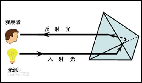 讓一束入射光線從正面照射在反光材料上,經(jīng)內部折射,再反向穿透反光材料,沿入射光平行的方向反射回來,讓在一定觀察區(qū)域內的觀察者捕捉到反射光,又稱“回歸反射”,屬于被動光源范疇。