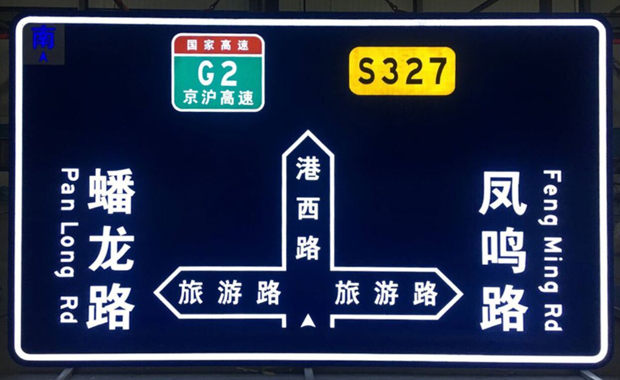1、指示、指路類標(biāo)志(深色底膜,白色字符膜,因白色反光膜的透光率強(qiáng),其它顏色透光率弱,不適合采用半透工藝,特別式黑色字膜不透光);