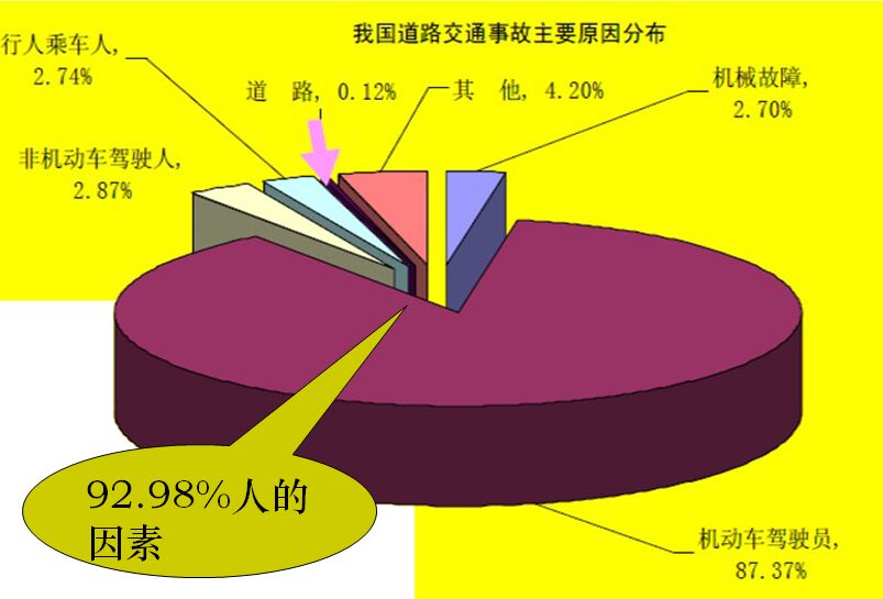 海因里希用多米諾骨牌來形象地描述事故因果的連鎖關系:在多米諾骨牌系列中,一只骨牌被碰倒了,其余的骨牌將相續(xù)按波的方向被碰到,如果移去其中一只骨牌,則連鎖反應被破壞,事故被終止。他的理論人為,防止人的不安全行為,消除非人為因素的不安全狀態(tài),以此中斷事故連鎖進程,從而規(guī)避事故發(fā)生。根據(jù)《墨菲定律》的描述,交通要素中一旦有設計缺陷存在,發(fā)生事故是時間累計后的必然結果。由于遺傳因素、身體因素、心理因素等多重作用,會對人的判斷力、行動力產(chǎn)生影響,在調取大量事故資料研究后發(fā)現(xiàn),導致事故發(fā)生的直接原因中,人為因素的影響占據(jù)很大一部分。
