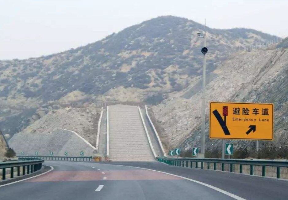在長陡下坡路段,因車輛制動失效,而導致車輛失控,在行車道外側增設避險車道,供失控車輛駛離正線安全減速,規(guī)避事故危險。