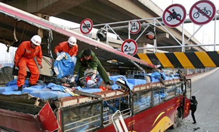因橋梁限高,或區(qū)域特殊管制需求,各地限高龍門架設置不在少數(shù),但“限高架削平公交車頂”、“消防車無法通過限高架”等關鍵搜索短語,隨便在百度上搜索一下,出來的事故照片五花八門。從失效安全設計理念考慮,部分廠家已研制出彈性限高架,和智能限高架,當超高車輛通過限高架時,門架橫檔能柔性偏移,不至于被強行“刮痧”,命懸一線。